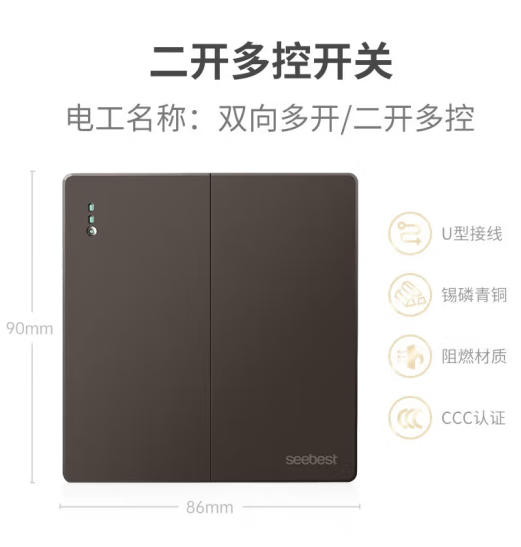 视贝(SEEBEST)二开多控 开关面板86型家用暗装墙壁开关空调插时尚质感 (zhyghf_221723897)SKU:yzwhyp908036