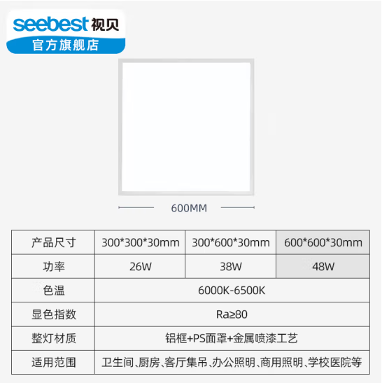 首页 > 电气设备 > 室内照明灯具 > 视贝 平板灯/明耀二代/48W/白色/白光 集成吊顶灯平板灯led厨房灯现代简约整体灯具嵌入式卫生间天花灯 (zhyghf_221723756)SKU:yzwhyp908124
