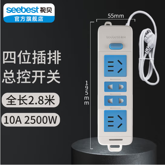视贝 四位 2.8米 插座插排插线板插板家用扦线板带线2M3M5米长线带开关6位扦座 (zhyghf_221723763)SKU:yzwhyp908138