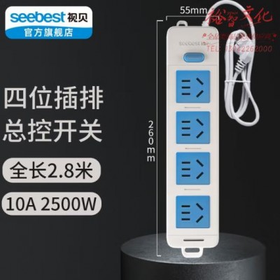 首页 > 建筑建材 > 开关插座 > 视贝 四位(全五孔) 2.8米 插座插排插线板插板家用扦线板带线2M3M5米长线带开关6位扦座 (zhyghf_221723769)SKU:yzwhyp908140