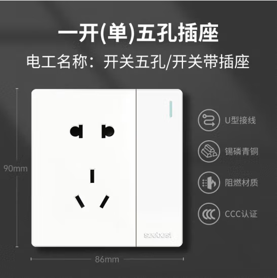 视贝(SEEBEST)一开单五孔插 开关面板电源白色86型全屏大板智美系列 (zhyghf_221723792)SKU:yzwhyp908143