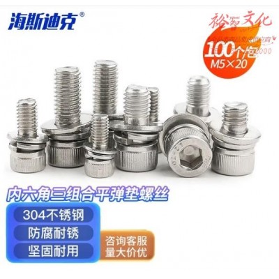 首页 > 建筑建材 > 五金附件 > 海斯迪克 HK-206 304不锈钢内六角三组合平弹垫螺丝 杯头螺栓 M5×20(100个/包) (zhyghf_93501217)SKU:yzwhyp908494