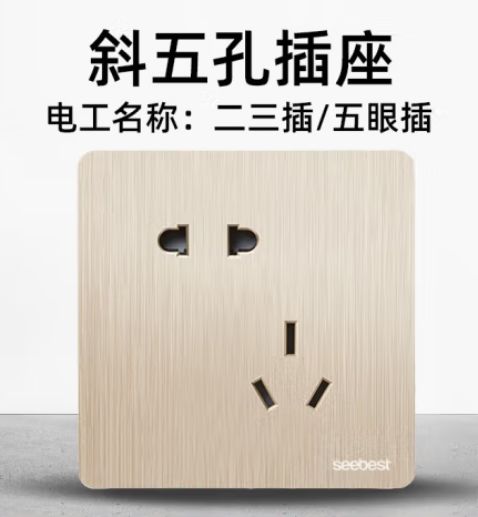 视贝(SEEBEST)斜五孔插座 开关面板高端拉丝金大板香槟金系列 (zhyghf_221723917)SKU:yzwhyp908505