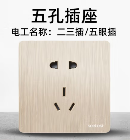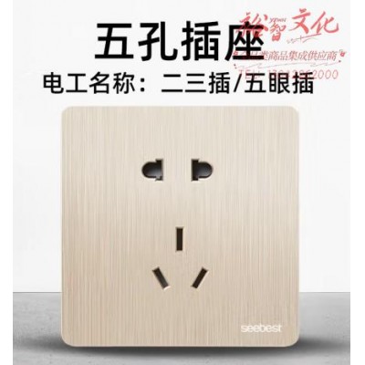 视贝(SEEBEST)五孔插座 开关面板高端拉丝金大板香槟金系列 (zhyghf_221723916)SKU:yzwhyp908507
