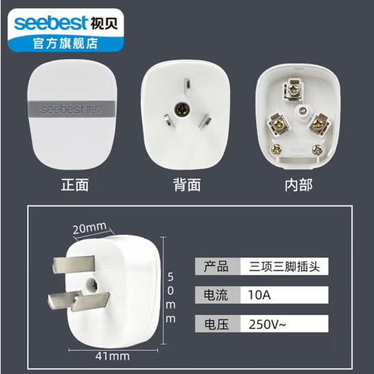 视贝 10A三脚(2500W) 空调插头扁三相10a插头2脚3脚电源可拆插头 (zhyghf_221723915)SKU:yzwhyp908518