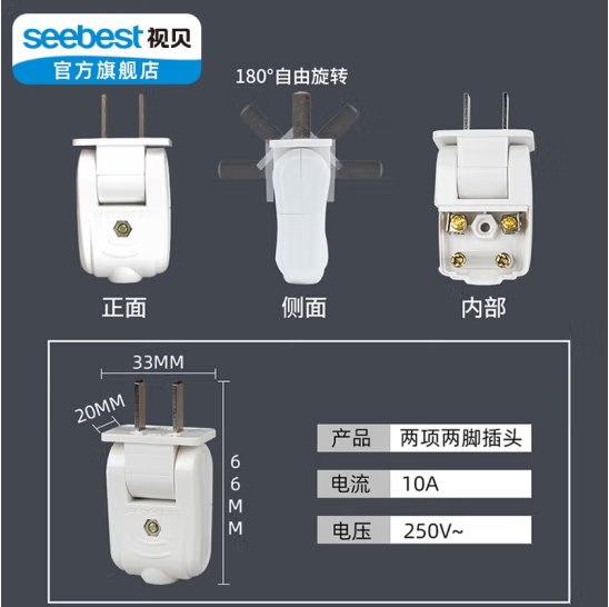 视贝 10A两脚活动插头(2500W) 空调插头扁三相10a插头2脚3脚电源可拆插头 (zhyghf_221723914)SKU:yzwhyp908534