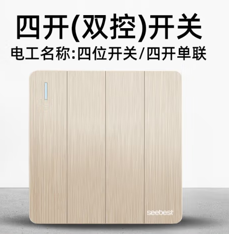 视贝(SEEBEST)四开(双控)开关 开关面板高端拉丝金大板香槟金系列 (zhyghf_221723930)SKU:yzwhyp908555