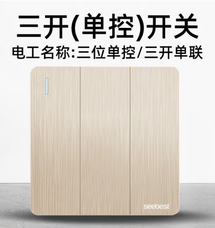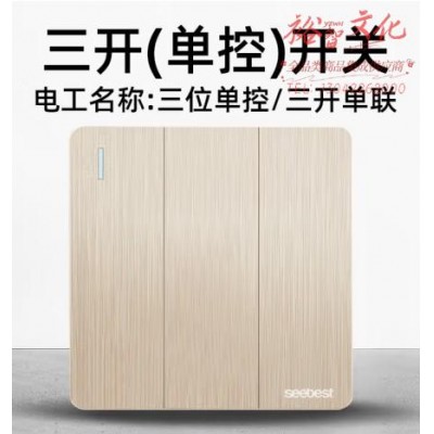 视贝(SEEBEST)三开(单控)开关 开关面板高端拉丝金大板香槟金系列 (zhyghf_221723927)SKU:yzwhyp908569