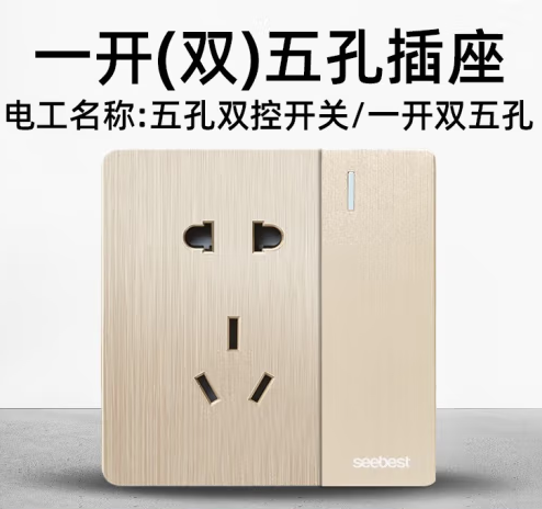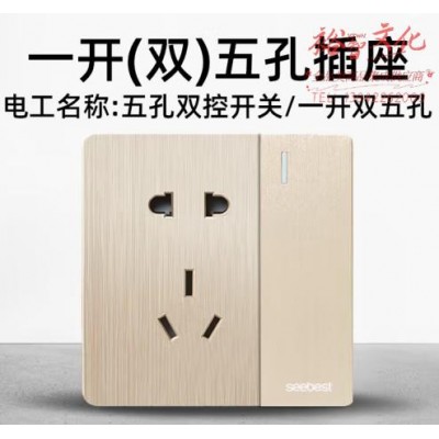 视贝(SEEBEST)一开(双)五孔插座 开关面板高端拉丝金大板香槟金系列 (zhyghf_221723934)SKU:yzwhyp908590