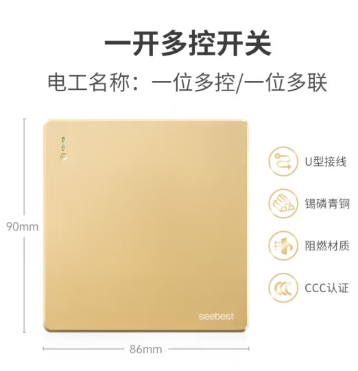 视贝(SEEBEST)一开多控 开关插座墙壁开关金色系列 (zhyghf_221723944)SKU:yzwhyp908597