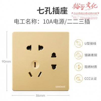 视贝(SEEBEST)七孔插座 开关插座墙壁开关金色系列 (zhyghf_221723940)SKU:yzwhyp908602