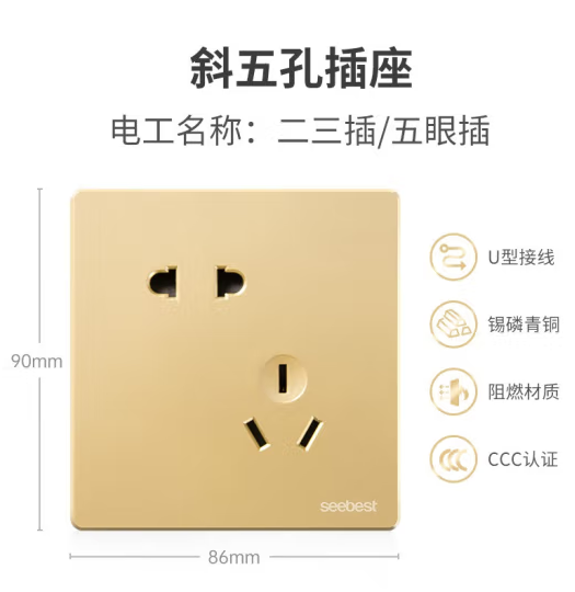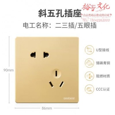 视贝(SEEBEST)斜五孔插座 开关插座墙壁开关金色系列 (zhyghf_221723939)SKU:yzwhyp908603