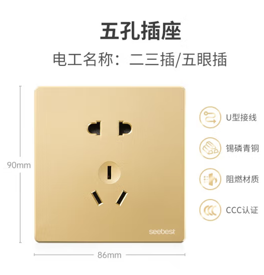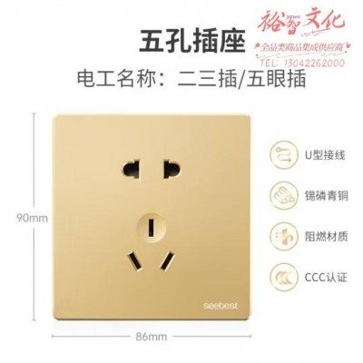 视贝(SEEBEST)五孔插座 开关插座墙壁开关金色系列 (zhyghf_221723938)SKU:yzwhyp908605