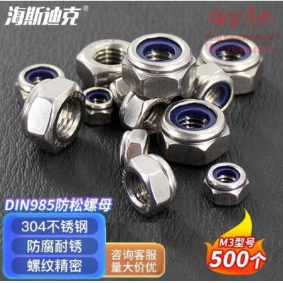 首页 > 建筑建材 > 五金附件 > 海斯迪克 304不锈钢尼龙塑料防松自锁螺帽 DIN985防松螺母 HKsq-461 M3(500个) (zhyghf_93501253)SKU:yzwhyp908610