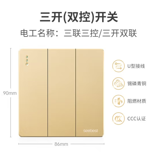 视贝(SEEBEST)三开双控 开关插座墙壁开关金色系列 (zhyghf_221723949)SKU:yzwhyp908624