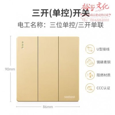 视贝(SEEBEST)三开单控 开关插座墙壁开关金色系列 (zhyghf_221723948)SKU:yzwhyp908625