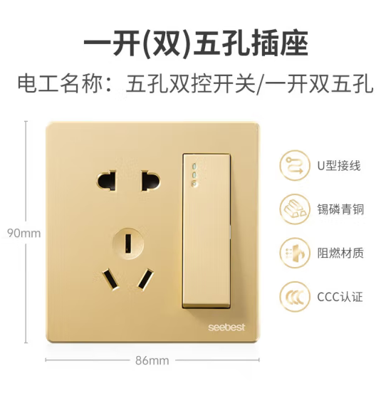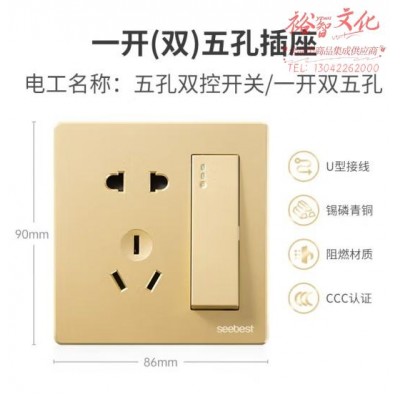 视贝(SEEBEST)一开双五孔 开关插座墙壁开关金色系列 (zhyghf_221723954)SKU:yzwhyp908646