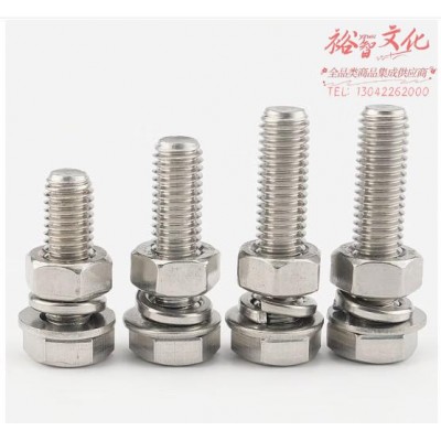 首页 > 建筑建材 > 五金附件 > 海斯迪克 304不锈钢外六角螺丝DIN933螺母平垫弹垫套装 全牙螺栓四件套组合HKsq-465 M16*140(3套) (zhyghf_93501269)SKU:yzwhyp908676