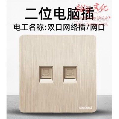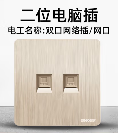 视贝(SEEBEST)二位电脑插座 开关面板高端拉丝金大板香槟金系列 (zhyghf_221723919)SKU:yzwhyp908794