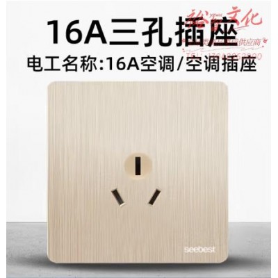 视贝(SEEBEST)16A三孔插座 开关面板高端拉丝金大板香槟金系列 (zhyghf_221723931)SKU:yzwhyp908799