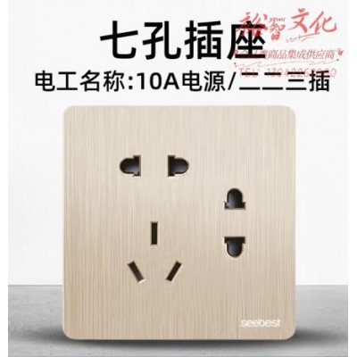 视贝(SEEBEST)七孔插座 开关面板高端拉丝金大板香槟金系列 (zhyghf_221723932)SKU:yzwhyp908801