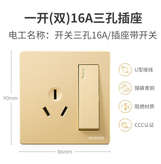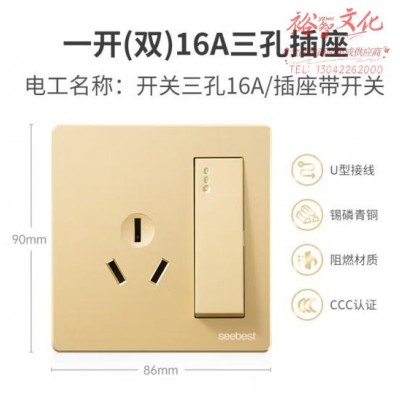 视贝(SEEBEST)一开双16A三孔 开关插座墙壁开关金色系列 (zhyghf_221723953)SKU:yzwhyp908805