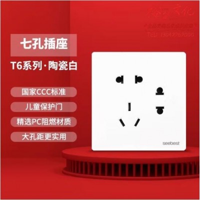 视贝 七孔插座 开关面板墙壁插座电源86型全屏面板智美系列 (zhyghf_221723966)SKU:yzwhyp908832