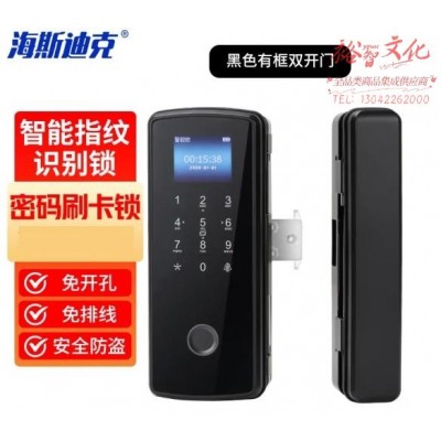 海斯迪克 玻璃门智能锁 免开孔免排线 办公室商场指纹密码刷卡锁HKsq-416 有框双开门 (zhyghf_93501130)SKU:yzwhyp908848