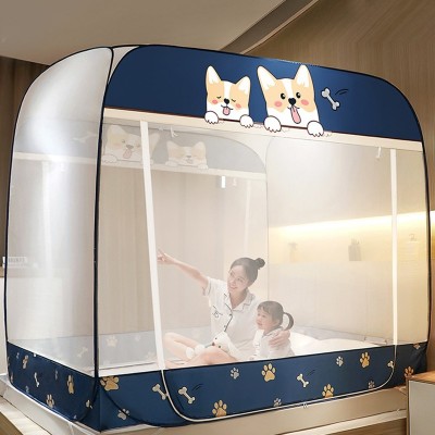 蚊帐家用加密帐纱防蚊蒙古包免安装 三开门可折叠拉链坐床式钢丝纹帐1.8米床 幻想狗