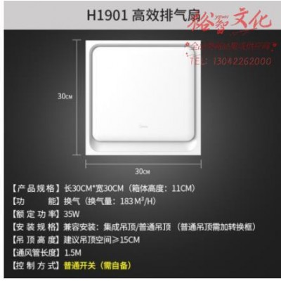 美的 Midea 排气扇换气扇排风扇厨房卫生间静音集成吊顶铝扣板管道扇 H1901-F40SKU:yzwhyp908993