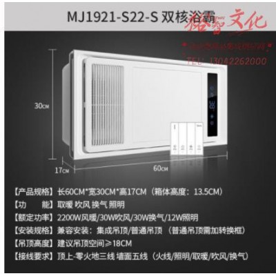 美的 Midea 多功能风暖浴霸强劲双核浴室取暖卫生间暖风机大屏LED照明换气吹风一体集成吊顶 MJ1921-S22-SSKU:yzwhyp908995