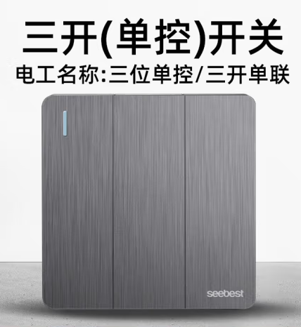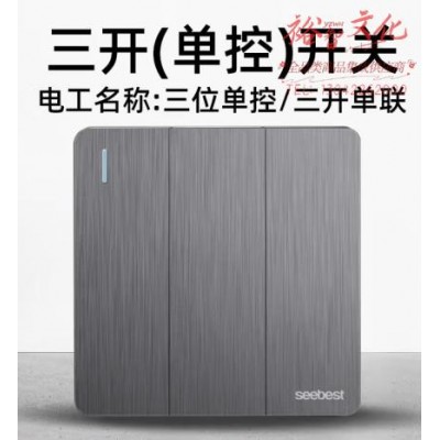 视贝(SEEBEST)三开(单控)开关 开关面板拉丝灰墙开大板智美系列 (zhyghf_221723877)SKU:yzwhyp909031