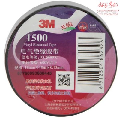 首页 > 建筑建材 > 电工电料 > 3M 1500#无铅电气(电工)绝缘胶带 黑色 耐磨防潮耐酸碱10米 10卷/组SKU:yzwhyp909038