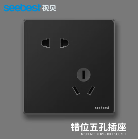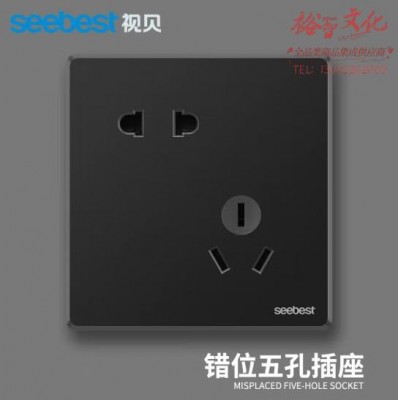 视贝 错位五孔插座 开关面板86型带开关品质大板时尚黑金双控网络面板 (zhyghf_221724060)SKU:yzwhyp909299