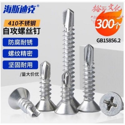 首页 > 建筑建材 > 五金附件 > 海斯迪克 410不锈钢十字槽沉头自钻自攻螺丝钉 钻尾钢牙燕尾螺钉GB15856.2 HKsq-610 ST3.9*25(300个) (zhyghf_93501343)SKU:yzwhyp909301