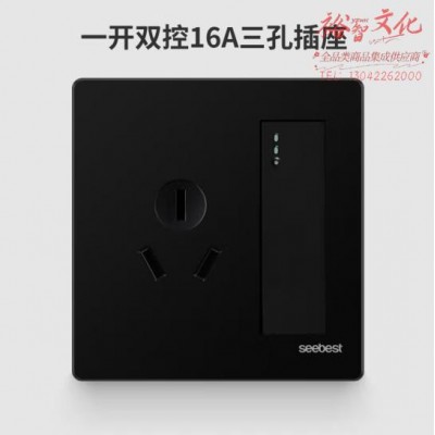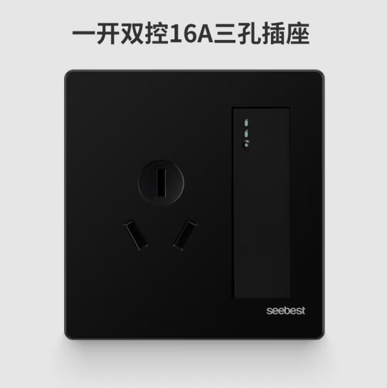 视贝 一开双控 16A空调插座 开关面板86型带开关品质大板时尚黑金双控网络面板 (zhyghf_221724073)SKU:yzwhyp909309