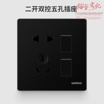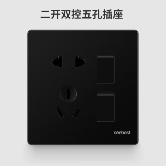 视贝 二开双控 五孔 开关面板86型带开关品质大板时尚黑金双控网络面板 (zhyghf_221724072)SKU:yzwhyp909310