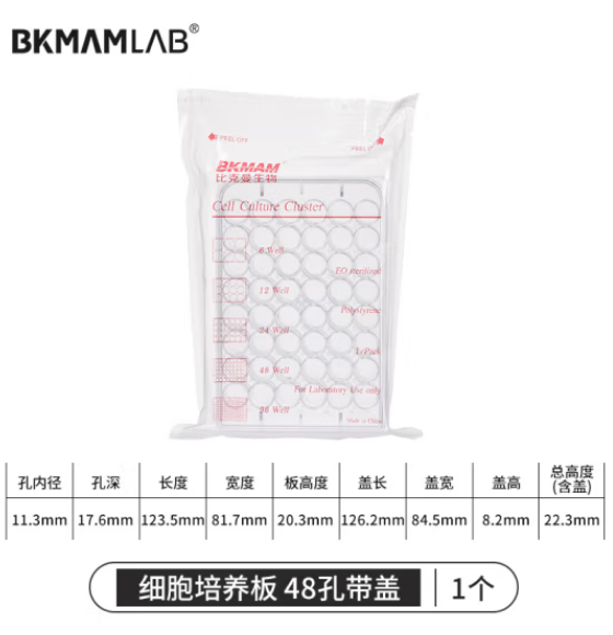 首页 > 仪器仪表 > 样品前处理及制备仪器 > 比克曼生物 细胞培养板96孔板透明带盖平底圆孔TC处理独立包装 48孔有盖 1个(2个起订) (zhyghf_221722352)SKU:yzwhyp909364