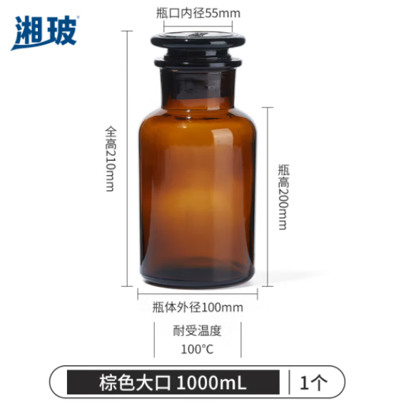 首页 > 仪器仪表 > 生物、医学样品制备设备 > 比克曼生物 湘玻 磨口瓶化学试剂瓶玻璃密封磨砂广口瓶小口收集气取样瓶棕色透明样品瓶实验室 【1000ml】棕色大口 (zhyghf_221722239)SKU:yzwhyp909377