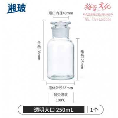 首页 > 仪器仪表 > 生物、医学样品制备设备 > 比克曼生物 湘玻 磨口瓶化学试剂瓶玻璃密封磨砂广口瓶小口收集气取样瓶棕色透明样品瓶实验室 【250ml】透明大口 (zhyghf_221722232)SKU:yzwhyp909380
