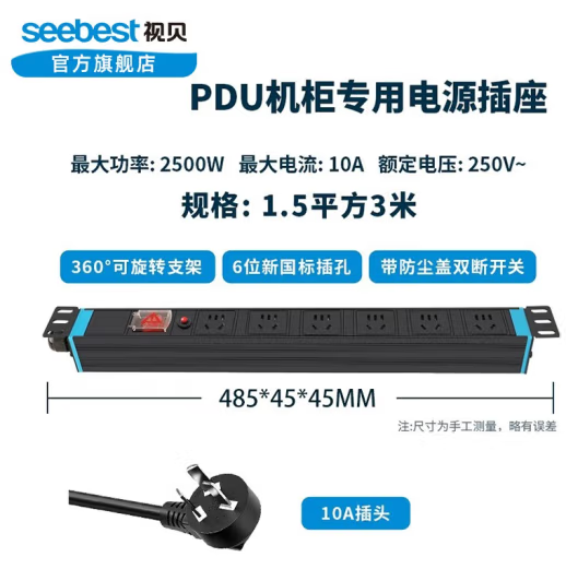首页 > 建筑建材 > 开关插座 > 视贝 6位五孔带线【线长1.5M米】10A pdu插排机柜插座线板金属电源分配单元电源线8位工业专用模块 (zhyghf_221724049)SKU:yzwhyp909462