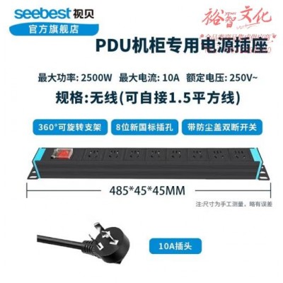 首页 > 建筑建材 > 开关插座 > 视贝 8位五孔带线【线长1.5M米】10A pdu插排机柜插座线板金属电源分配单元电源线8位工业专用模块 (zhyghf_221724050)SKU:yzwhyp909463