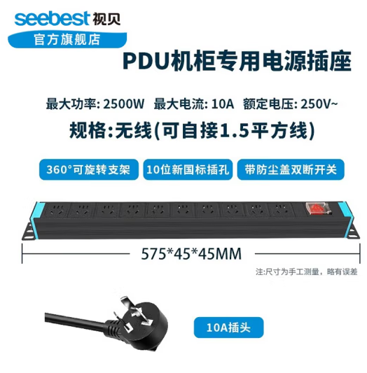 首页 > 建筑建材 > 开关插座 > 视贝 10位五孔带线【线长1.5M米】10A pdu插排机柜插座线板金属电源分配单元电源线8位工业专用模块 (zhyghf_221724051)SKU:yzwhyp909464