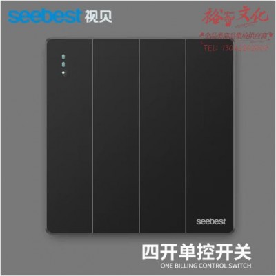 视贝 四开单控 开关面板86型带开关品质大板时尚黑金双控网络面板 (zhyghf_221724068)SKU:yzwhyp909484