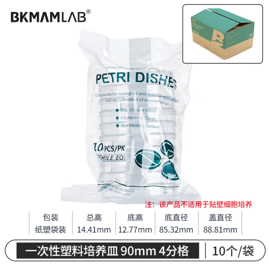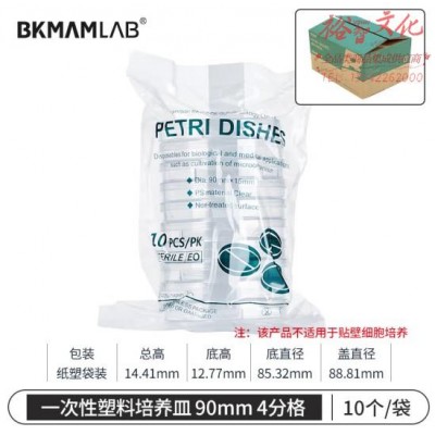 首页 > 仪器仪表 > 生物、医学样品制备设备 > 比克曼生物(BKMAM)整箱一次性塑料培养皿圆形无菌植物细菌酵种平板平皿 90mm4格(500个) 1箱 (zhyghf_221720481)SKU:yzwhyp909563