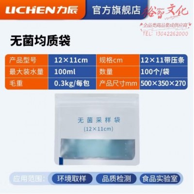 首页 > 仪器仪表 > 样品前处理及制备仪器 > 力辰科技(lichen)无菌均质袋一次性采样袋带压条实验室微生物环境取样灭菌袋 12x11cm (100个/袋) (zhyghf_221720050)SKU:yzwhyp909739