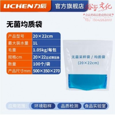 首页 > 仪器仪表 > 样品前处理及制备仪器 > 力辰科技(lichen)无菌均质袋一次性采样袋带压条实验室微生物环境取样灭菌袋 20x22cm (100个/袋) (zhyghf_221720052)SKU:yzwhyp909741
