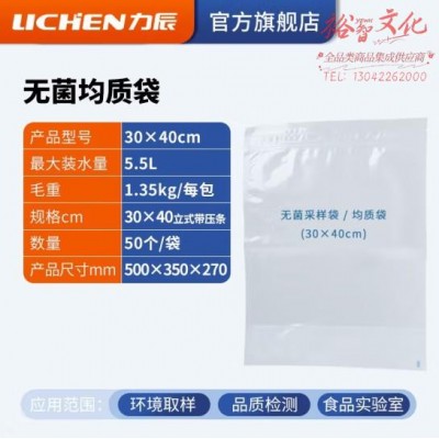 首页 > 仪器仪表 > 样品前处理及制备仪器 > 力辰科技(lichen)无菌均质袋一次性采样袋带压条实验室微生物环境取样灭菌袋 30x40cm (50个/袋) (zhyghf_221720055)SKU:yzwhyp909744