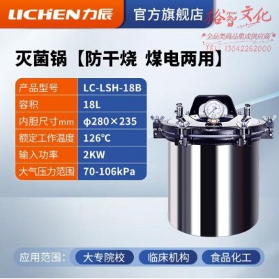 首页 > 仪器仪表 > 样品前处理及制备仪器 > 力辰科技 手提式不锈钢灭菌锅实验室消毒用高压高温蒸汽消毒灭菌锅消杀器械 LC-LSH-18B 18L(zhyghf_221716390)SKU:yzwhyp909939