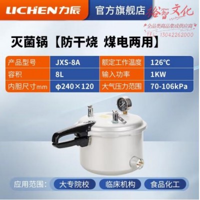 首页 > 仪器仪表 > 样品前处理及制备仪器 > 力辰科技 手提式不锈钢灭菌锅实验室消毒用高压高温蒸汽消毒灭菌锅消杀器械 8L 铝锅(不锈钢)(zhyghf_221716392)SKU:yzwhyp909941